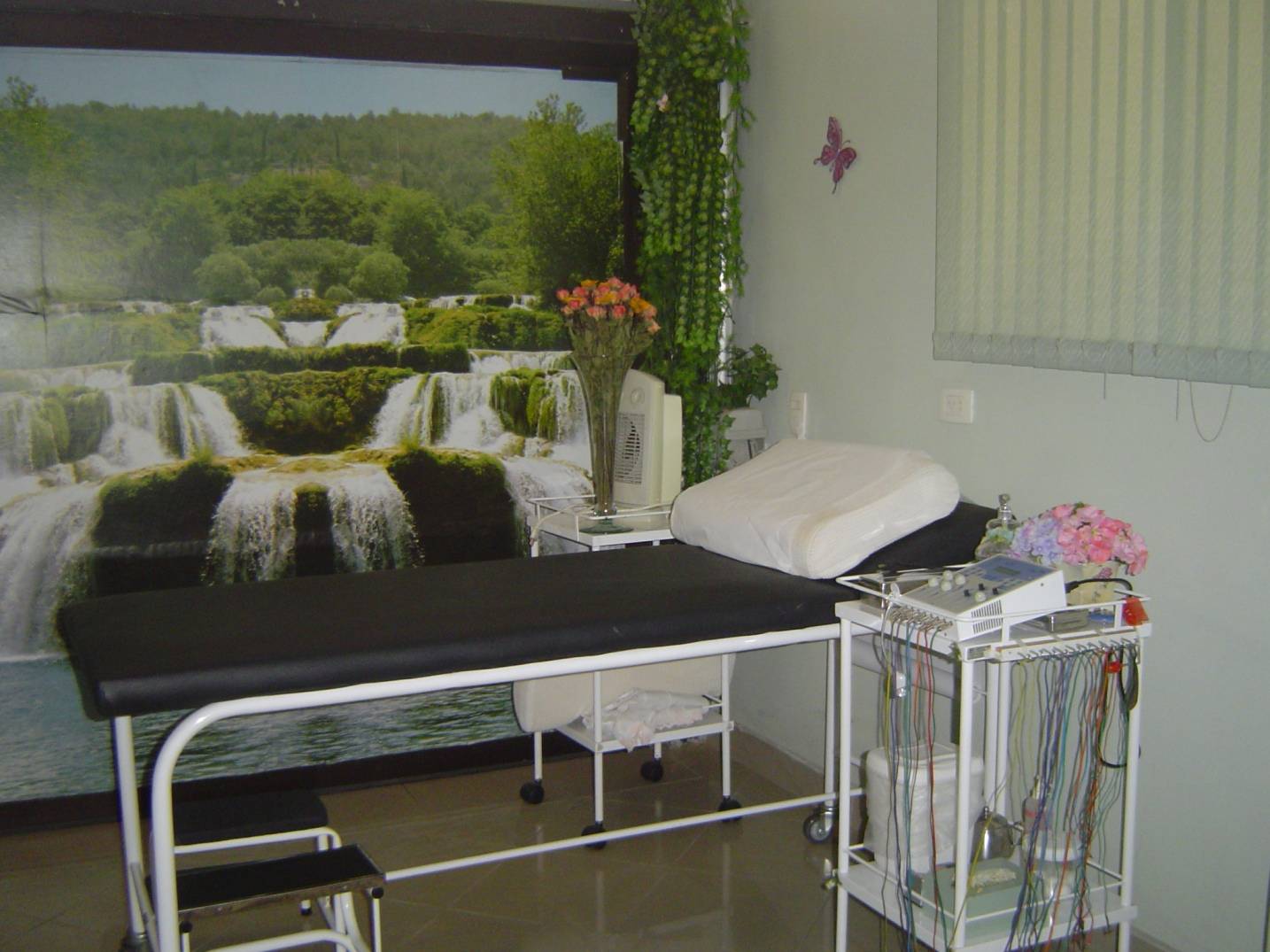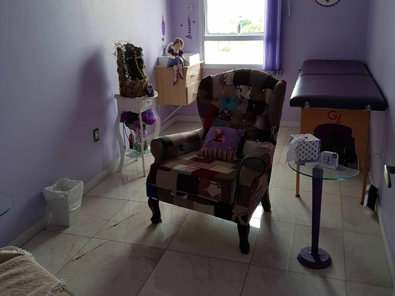Uma das salas disponibilizamos maca com apoio de braços e lacuna na face, e um lavatório.