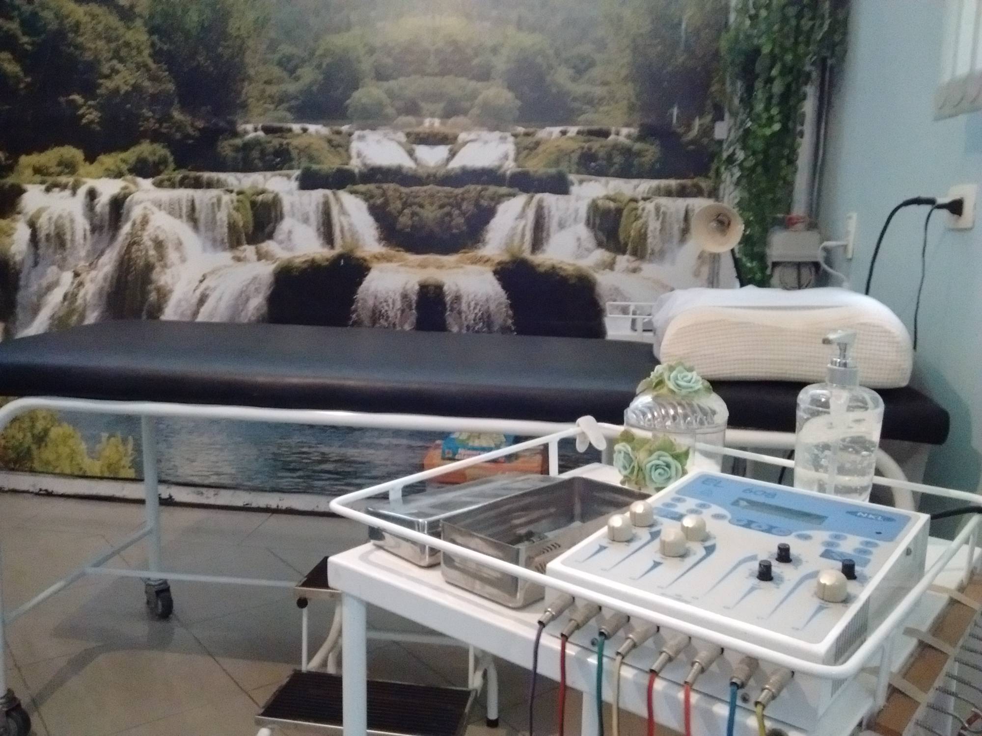 Contamos com gabinete de pia e divã para massagem, acupuntura e dermo aplicações, também mesa para apoio, sala de espera com água refrigerada, chás e biscoito de mel, em ambas unidades.